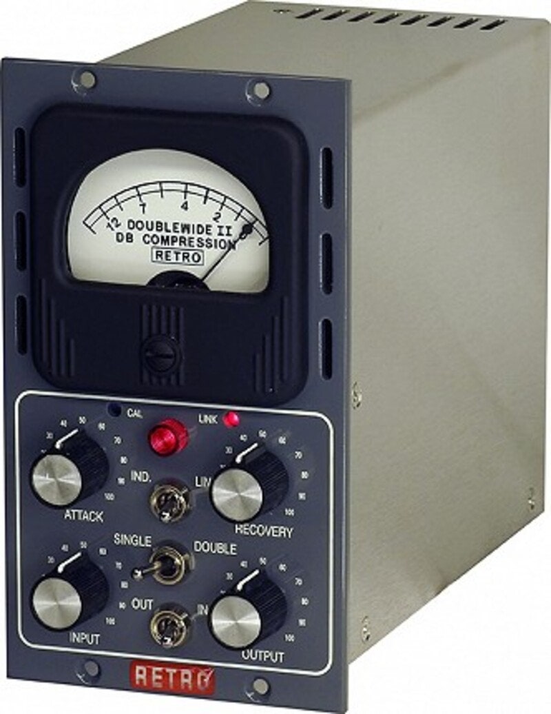 Artikelnummer 1076034The Retro instruments DOUBLEWIDE II is a mono tube compressor unit. This new version features faster attack and release time, stereo linking capabilities and a greatly improved signal to noise ratio.