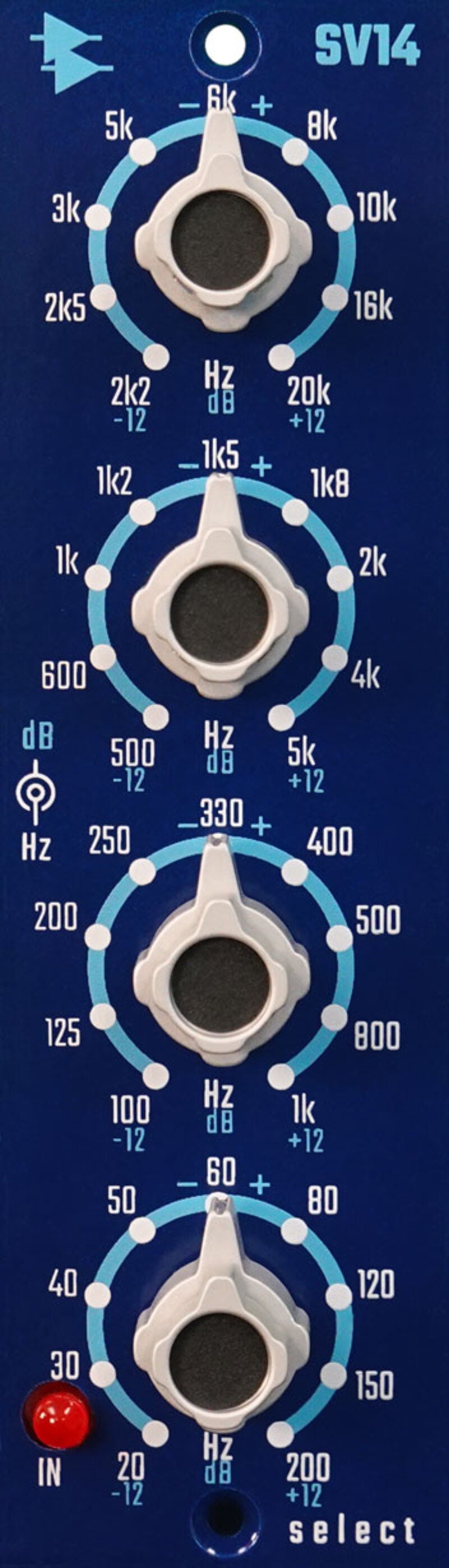 The API Select SV14 EQ circuit design is rooted in API's history. Faithfully re-engineered from the highly sought-after APSI 562 EQ's which were distributed by API during the 1970's and 1980's, the SV14 provides parametric equalization at an affordable price point. The SV14 also features an EQ in/out switch, transformer balanced output, and dual concentric knobs which provide continuously variable control of boost/cut and frequency selection.