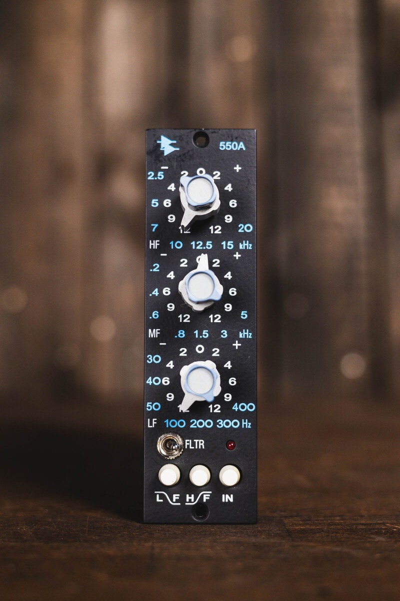 API 550A är en diskret 3-bands equalizer som har varit en etablerad studiostandard sedan slutet av 1960-talet. Modellen är känd för sin Proportional Q-krets, sina stegade kontroller och den klassiska API-konstruktionen med 2520 op-amp.