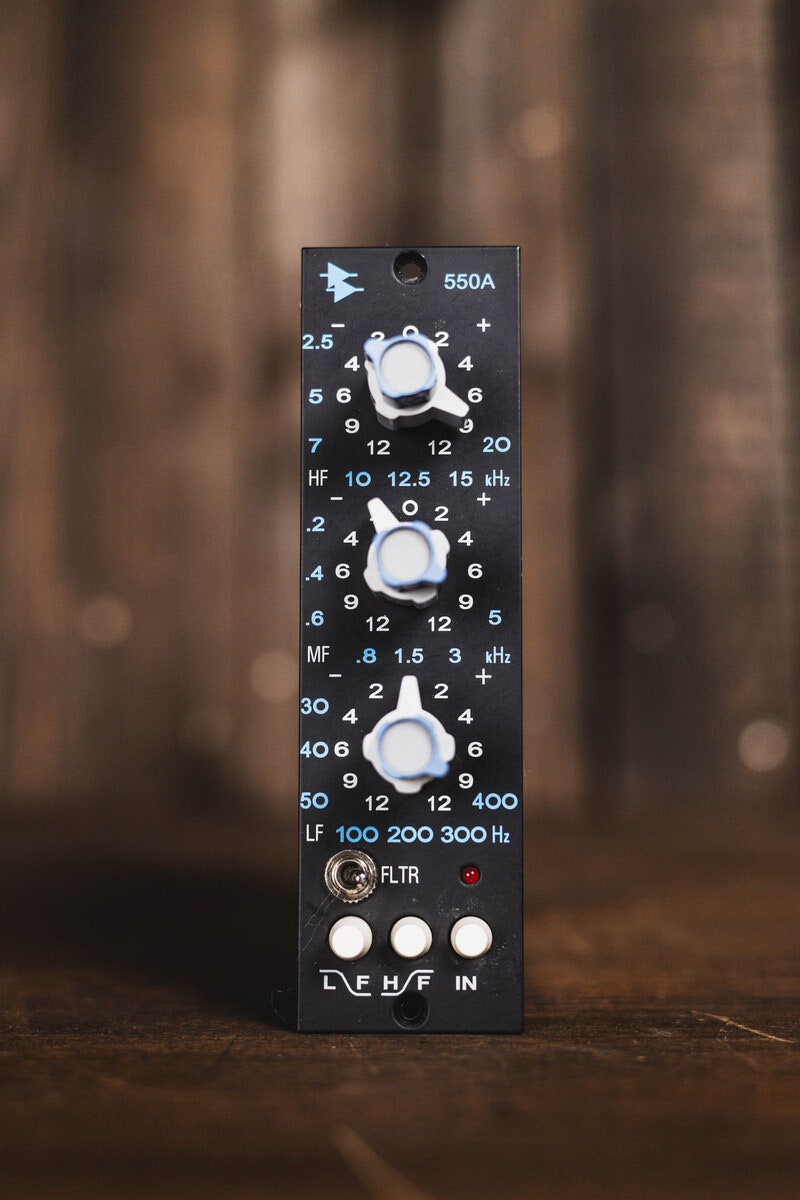 API 550A är en diskret 3-bands equalizer som har varit en etablerad studiostandard sedan slutet av 1960-talet. Modellen är känd för sin Proportional Q-krets, sina stegade kontroller och den klassiska API-konstruktionen med 2520 op-amp.