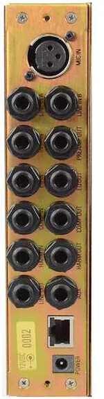 An extensive array of connectors are provided at the back to create your ideal chain and include inputs and outputs for the Preamp, EQ, Limiter and Harmonics. Multiple output points are also provided to let you record multiple signals simultaneously. An Aux Jack allows for external signals to be mixed in from another point in the unit or externally via guitar pedals for example.