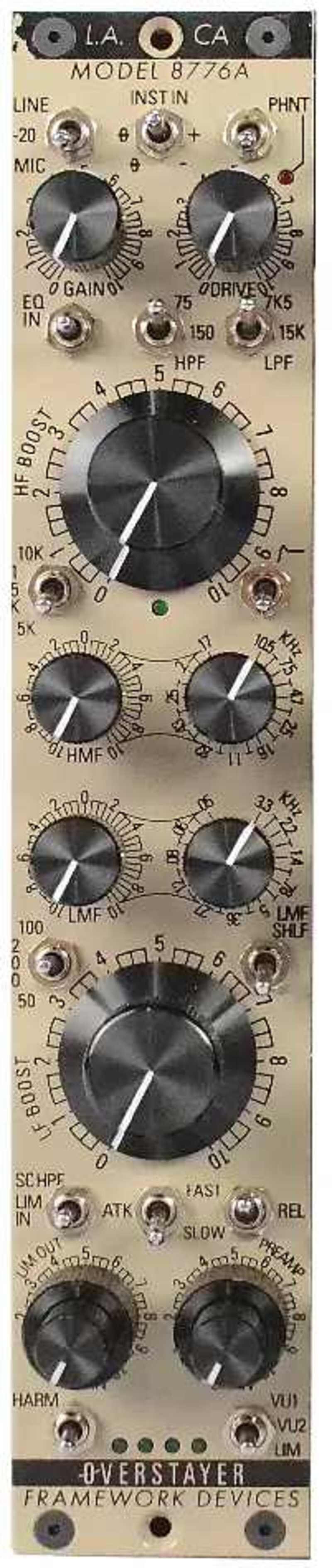 The Overstayer Imperial Channel Model 8776A combines a mic/Line/Instrument inputs with resonant filters, 4-band EQ, FET Limiting and Harmonics control in slim 5RU vertical module.