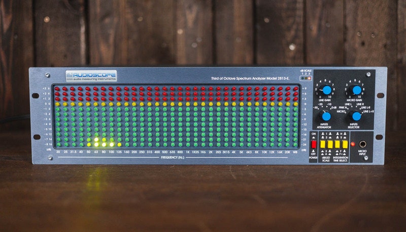 Audioscope 2813-E är en 1/3 oktavs realtids-spektumanalysator konstruerad för noggrann visning och mätning av ljudfrekvenser mellan 20 Hz och 20 kHz. Enheten är utrustad med 31 bandpassfilter och ett bredbandsläge, vilket gör den användbar i både ljudtekniska och akustiska mätmiljöer.