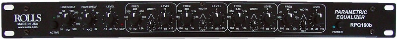 The RPQ160b is a 4 band parametric equalizer with high and low shelving filters and is capable of processing frequencies from 20Hz to 20KHz. These sort of units are for reducing room resonances, anti feedback, special effects, room flattening, etc.. The 160 also features XLR, 1/4" and RCA′s balanced and unbalances ins and outs.