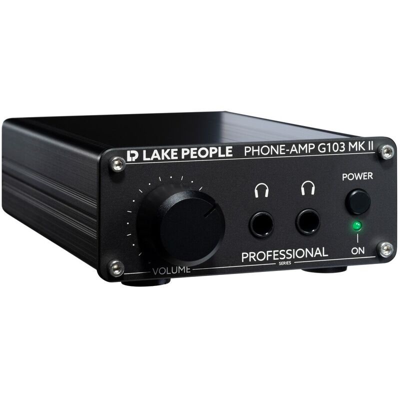 Lake People G103-P MKII är en hörlursförstärkare i desktop-format utvecklad för professionellt bruk i studio- och hifi-miljöer. Med balanserade XLR-ingångar, justerbar förstärkningsnivå och två parallella hörlursutgångar är den anpassad för situationer som kräver exakt och ren ljudåtergivning, oavsett hörlursmodell.