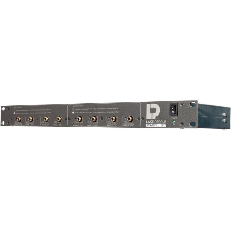 Lake People F822 är en 8-kanalig analog linjeomvandlare konstruerad för att anpassa ljudnivåer mellan professionell studioutrustning (+6 dBu) och konsumentljud (-10 dBV). Enheten hanterar nivåanpassningen med hög precision och minimal distorsion, vilket gör den lämplig för mastering, broadcast och liveproduktion där olika standarder ska integreras.