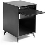 Artikelnummer 109438010U rack, svart finish, 610x535 mm yta, 762 mm höjd, utdragbar hylla 16 kg, kabelutgång, justerbara fötter, plattpackad