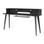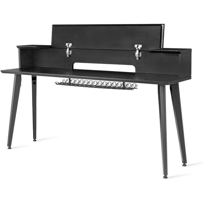 Den övre plattformen har ett lock med mjukstängning och mäter 1524 x 203 mm – anpassad för mindre ljudkort, kontroller eller laptops. Lockets konstruktion gör det möjligt att täcka över utrustning vid behov, samtidigt som en bakre utskärning ger åtkomst till portar och reglage på baksidan av klaviaturen eller annan utrustning.