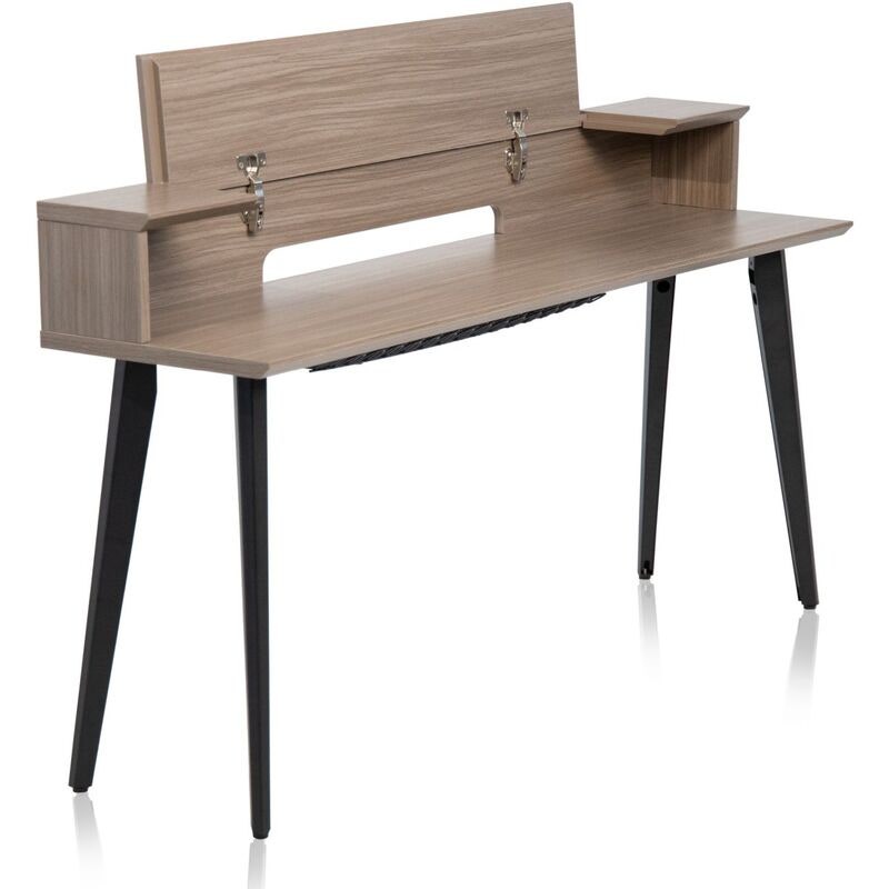Den övre plattformen har ett lock med mjukstängning och mäter 1524 x 203 mm – anpassad för mindre ljudkort, kontroller eller laptops. Lockets konstruktion gör det möjligt att täcka över utrustning vid behov, samtidigt som en bakre utskärning ger åtkomst till portar och reglage på baksidan av klaviaturen eller annan utrustning.