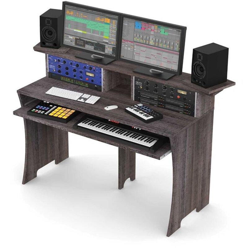 Glorious Workbench är en robust och ergonomisk arbetsstation framtagen för både hemmastudion och professionella projektmiljöer. Med sin eleganta design i driftwood-finish och smarta funktioner erbjuder den en inspirerande arbetsyta för musikproduktion, mixning och inspelning.
