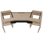 Artikelnummer 1095414Studiobord, 2×9U rack, integrerad keyboard drawer, justerbar mittsektion, björkfinish, monitorplattformar, avancerad kabelhantering.
