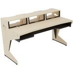 Modellen är utrustad med totalt 2×3U rackutrymme för att montera viktiga studioenheter direkt i bordet. Den integrerade keyboard drawer ger smidig placering av ett MIDI-keyboard utan att ta upp värdefull plats på bordsskivan, vilket bidrar till ett effektivt och ergonomiskt arbetsflöde.Konstruktion och materialval