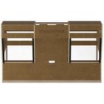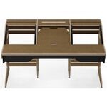 Artikelnummer 1095549Studiobord, 2×9U rackutrymme, integrerad keyboard drawer, björkplywood, justerbar mittsektion, monitorplattformar, avancerad kabelhantering, 50s Brown-finish