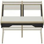 Artikelnummer 1095572Studiobänk, björkplywood, 2×9U racksektioner, keyboard drawer ingår, justerbar mittsektion, 70s White-finish
