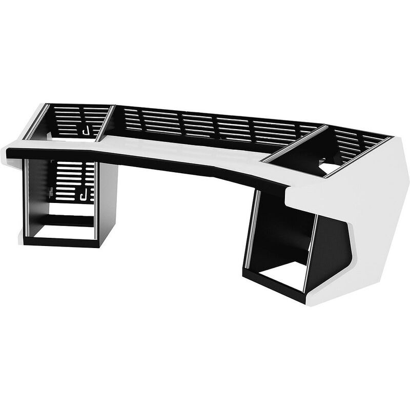 Artikelnummer 1095592Studiobord, 2x12U + 2x12U rackutrymme, ergonomiskt trapezformat, optimerad monitorplacering, avancerad kabelhantering, modulär konstruktion i fuktresistent MDF