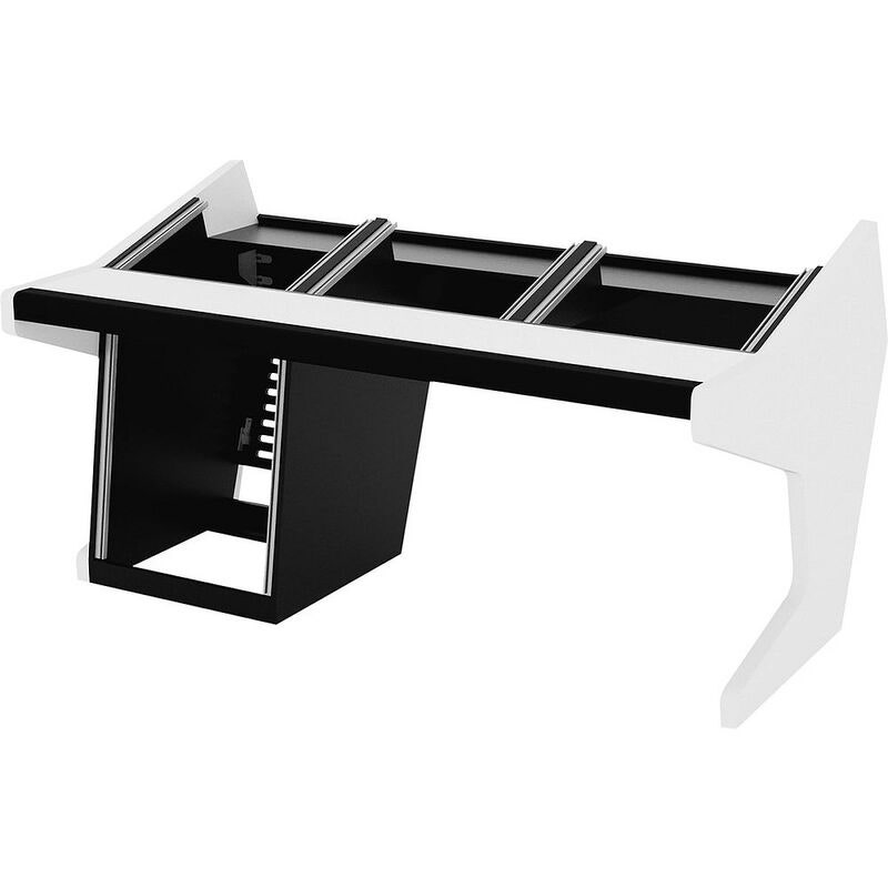 Arbetsytans geometri och den övre hyllans utformning stödjer korrekt placering av närfältsmonitorer och en lyssningsposition som bidrar till tydlig stereobild och kontrollerat reflektionsbeteende. Konstruktionen är anpassad för miljöer där monitorprecision är viktig.