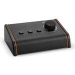 It operates without active amplification in the signal path and uses an analogue passive volume control for level adjustment.