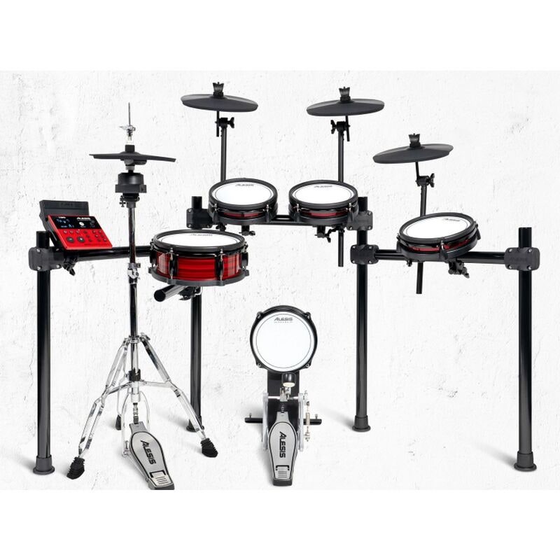 Alesis Nitro Ultimate är ett elektroniskt trumset med nio delar som ger en komplett speluppsättning för övning, inspelning och musikskapande. Setet innehåller mesh-snare, mesh-toms, mesh-baskagge med pedal samt ett hi-hat-anslag med separat kontrollenhet. Crash- och ridecymbalerna är dual-zone och utrustade med choke-funktion för realistisk spelkänsla.