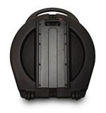 I bakant sitter två rollerbladeshjul samt att det finns ett uppfällbart handtag. Så när du ska ut på turné drar du bara Zildjian's Rolling Cymbal Vault efter dig, som en resväska.