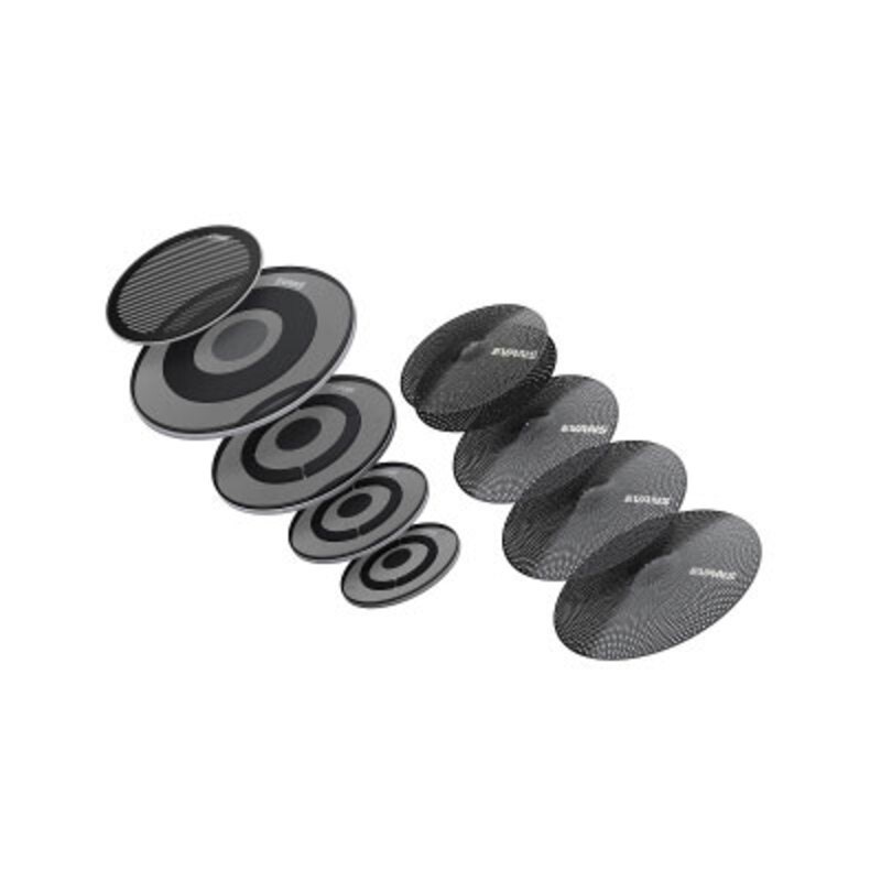(10", 12" och 16"), ett 22" bastrumskinn , det medföljande 14" dB ONE virveltrumman kombinerar ShockWeave Mesh med ny Snare Sim-teknik för att hålla nere
