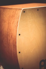 Helt unik design med böjda sidor i stället för traditionella raka kanter. Den extra breda/böjda formen hjälper till att få ett mörkt och basigt sound men ändå med ett tydligt toppljud från frontplattan. Cajonens kropp är tillverkad av Siam Oak och frontplattan i maple/lönn i matt finish.