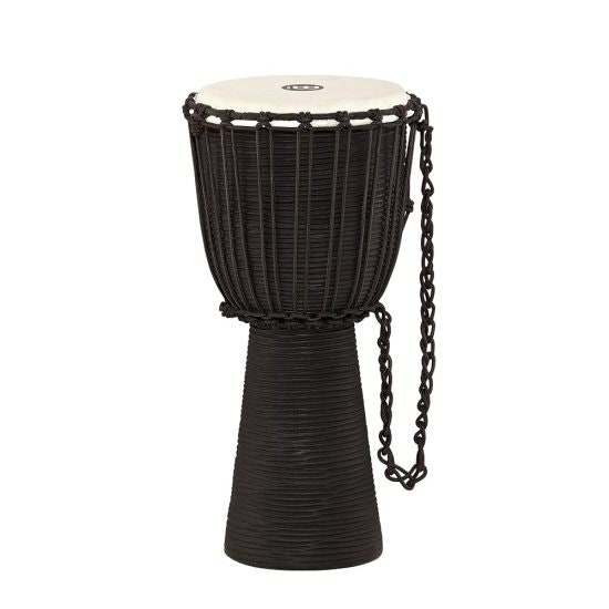 Traditionella Djembes tillverkade ur ett stycke odlad Mahogny. Det suggestiva mönstret är handkarvat och förstärker mystiken kring trummans kraft. Getskinn av god kvalitet och välfasade stommar gör dessa djembes både lättspelade och välljudande. Pre Stretched PP Nylon rep ger stabil stämning.
