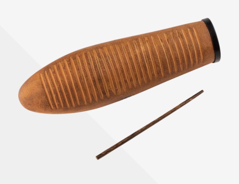 Spela och skapa sound genom att dra den medföljande pinnen fram och tillbaka över spåren på guriokroppen.
