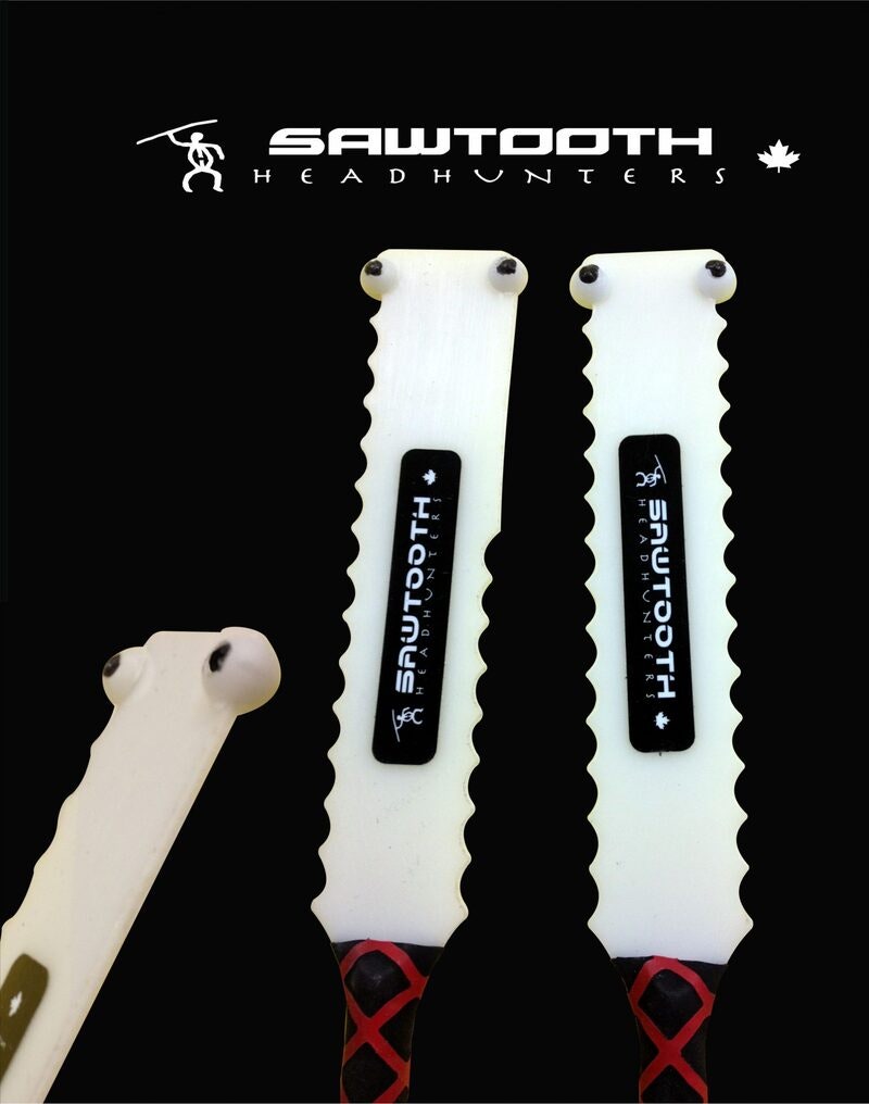 Sawtooth are comprised of a high impact flexible polyethylene material. There are several zones that can produce different effects. The serrated edge can be used to simulate a guiro, the designated flat area can be used to create an effective ‘cross stick’ sound. The nylon beads can accentuate the cymbal and drums sounds in several ways. When played in the vertical plane the nylon beads produce a louder deeper sound as compared when played in the horizontal plane, produce a thinner sound. The resiliency and flexible polyethylene allows multi-stroke rebounds (cheater strokes) when played off edge of drum the rim, cymbal bell or hi-hat edge.