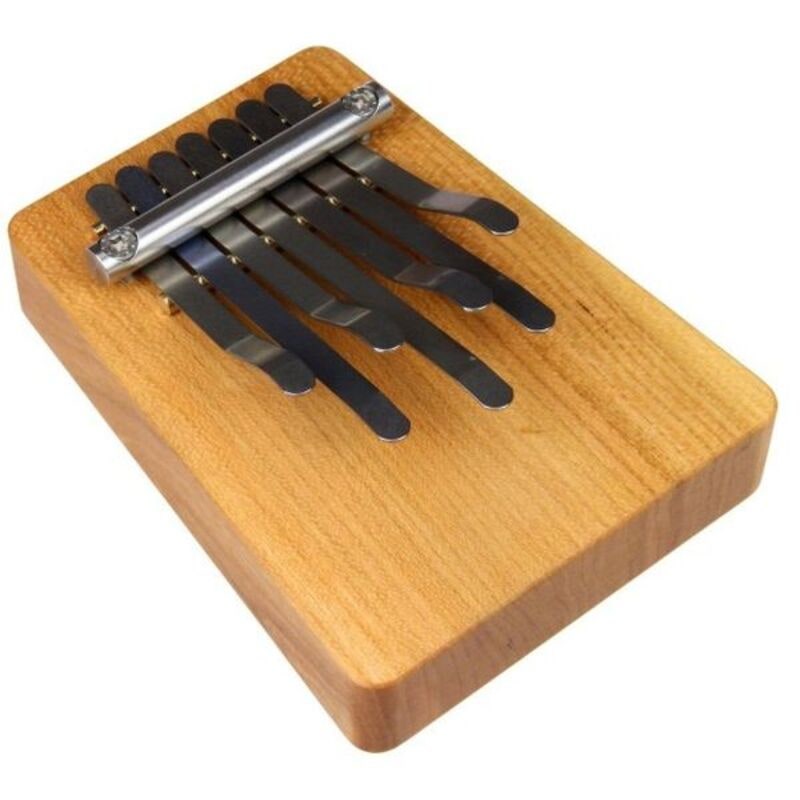 Liten behändig Kalimba, tillverkad i Tyskland. Kropp i mahogny. Pentatoniskt stämd i C-dur: E4, G3, D4, E3, C4, A3, A4 med standard pitch: A.