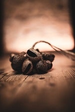 Pangi Seed Nutshells/Pangifrö-nötskal, fästa i ett snöre. Skapar ett unikt och coolt sound, mångsidigt instrument som fungerat ha runt vristen eller hålla i handen.
