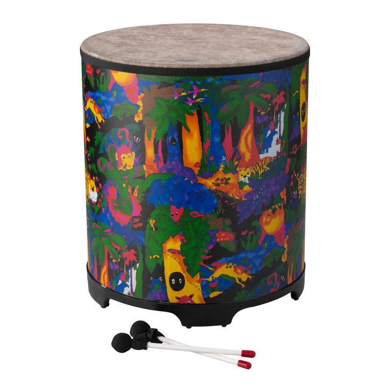 The Kids Percussion® Gathering Drum produces a big, fun sound. Featuring an Acousticon® shell, a pre-tuned Skyndeep® drumhead, and a vibrant Rainforest finish, the Kids Percussion® Gathering Drum can be played with hands, mallets or sticks. Ideal for group drumming in a classroom setting, the Kids Percussion® Gathering Drum is an important part of the percussion family of rhythm instruments and playfully introduces children to the basic building block of all music, which is rhythm. Ages 5 and up. Available in sizes: 16” x 8”, 18” x 8”, 22” x 21”, and 22” x 8”.