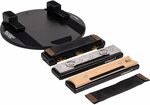 Basplattan kan placeras på valfritt standardiserat virvelstativ eller direkt ovanpå en 14” virveltrumma, vilket gör att Backbeat Station Pro integreras naturligt i befintlig uppsättning. Två medföljande par distanser monteras under de bakre effekterna och höjer spelpositionen för förbättrad ergonomi.