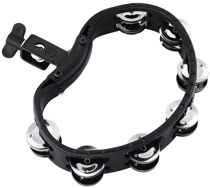 Passar både for percussionister och till trumset som önskar tamburin till sitt spel. Lätt att montera och kan spelas med stockar.