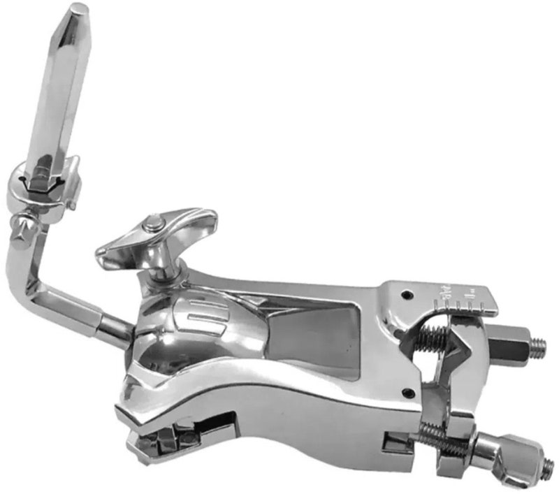 Den kromade klampen har ett hexformat ballrod som är vridbart så du kan vrida runt din puka & stämma underskinnet utan att haka av den från hållaren.