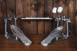 Dubbel bastrumpedal med dubbel kedjedrivning, tvåsidigt slaghuvud samt uni-lock