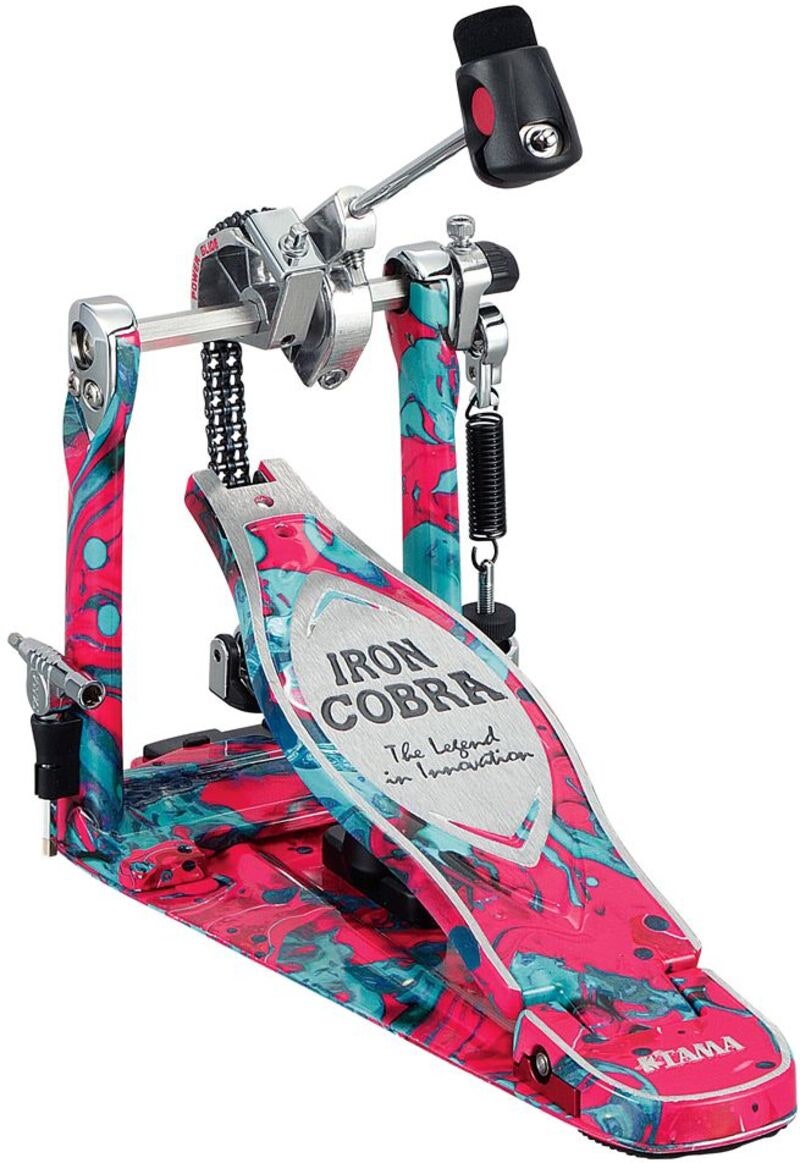Iron Cobra sägs vara världens mest sålda pedal och uppdaterad på inte mindre än 6 punkter. Alla tjänar tre syften: snabbare action, bättre sound och ökad stabilitet. Bakom alla nya beteckningarna hittar man en bättre pedal som skall befästa Iron Cobras position som nummer 1. Denna modell är en jubileumsutgåva av Tama's 50 års firande och erbjuds i två limiterade finishar, Coral Swirl och Psychedelic Rainbow.
