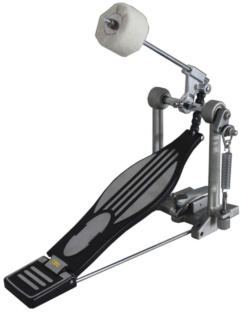 Enkel bastrumpedal för nybörjaren. Kedjedrift för bra respons, rund filtklubba för klassisk känsla & sound.