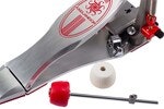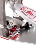 Fotplattorna är i aluminium för en lätt spelkänsla, utväxlingen går att justera i tre olika lägen vilket ger tre helt olika spelkäslor i pedalen, fjädernkontruktionen är av unik modell där man låser & justerar i ett enda grepp. Två olika klubbhuvuden ingår, ett är i filt för ett mera traditionellt sound & det andra är i plast för ett hårdare klipp med mera attack. Fotplattorna är av längre modell så du ska kunna spela med vilken bastrumteknik du önskar utan att bli hämmad av pedalen.