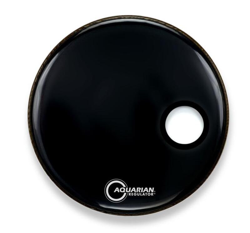 The offset ported Black Regulator RSM is a single ply, resonant bass drumhead that features a small, center-positioned, "Floating Muffling Ring" for added resonant control. This patented Aquarian innovation eliminates the need for external muffling of the resonant head.