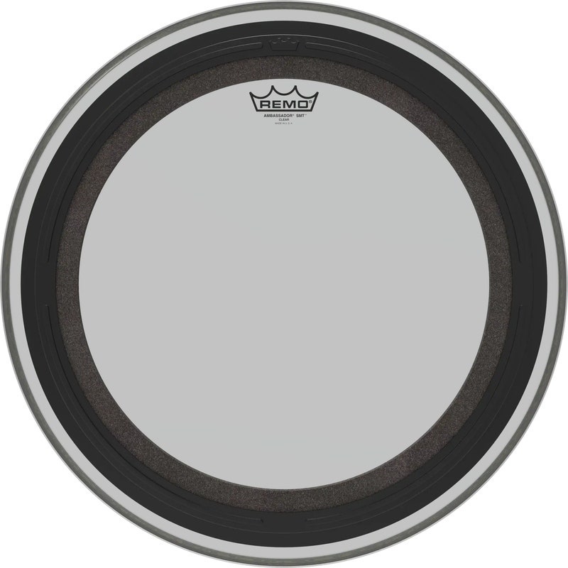The Ambassador® SMT™ Clear bass drumhead is a pre-muffled design featuring Sub Muffl® Technology.