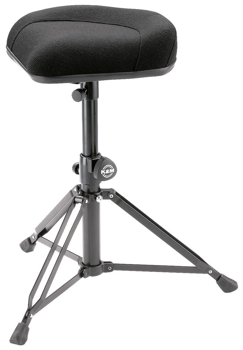A sturdy, high-quality drum throne featuring an ergonomically-designed seat. Wobble-free locking height-adjustment mechanism is extremely functional and user-friendly. Large 3-foot radius for best-possible stability. Fully-foldable. Molded seat covered with black imitation leather or wear-resistant black fabric.