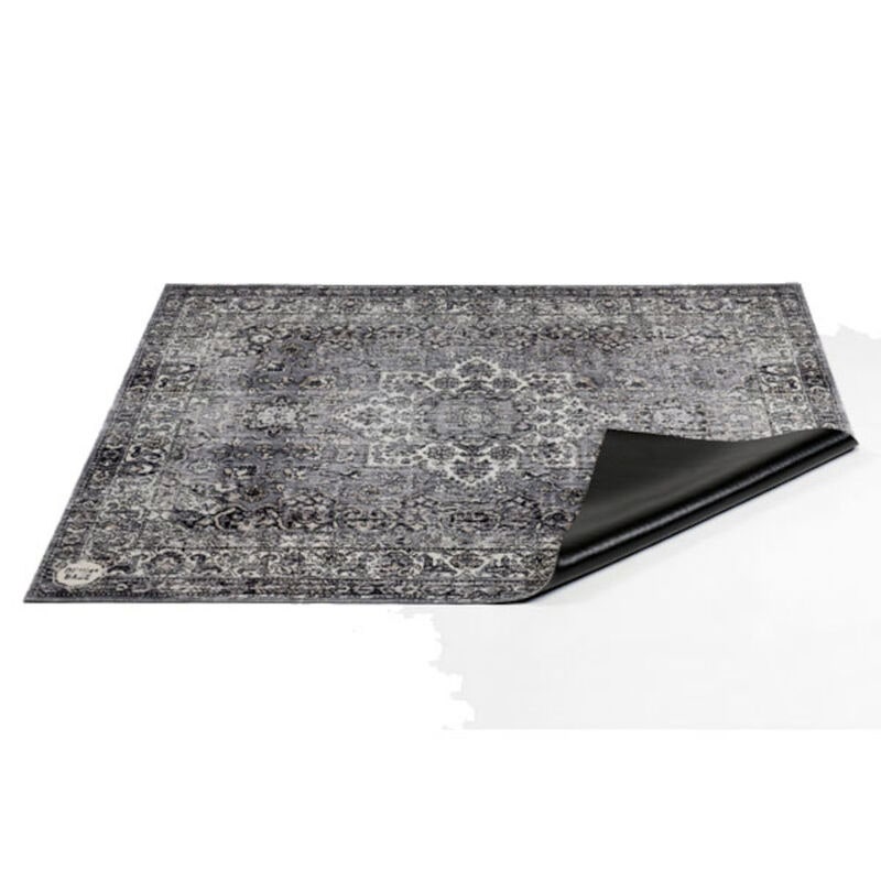 Skapa din egen scen med hjälp av denna 185×160 cm matta i Persisk stil med vintagelook. Den passar utmärkt för en rad instrument som gitarrer, basar, trummor mm. Mattan väger 8 kg, är 6,5 mm tjock där 2,5 mm består av en tjock gummiyta på baksidan som förhindrar att mattan glider.
