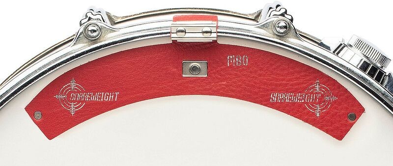 Snareweight M80 Red är en kraftfull virveldämpare utformad för medium till tung dämpning och handbyggd i South San Francisco. M80-modellen använder Snareweights AZ-läder, som balanserar fasthet och flexibilitet för att ge stabil dämpning utan att ta bort trummans naturliga attack eller toppregister. Den röda finishen ger en tydlig visuell markering på trumman och gör den lätt att hitta i mörka scenmiljöer.