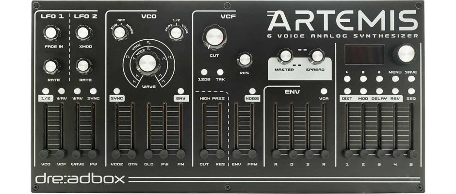 analogsynth, 2-ton, parafonisk, semi-modulär analogsynth, 2 VCOs, dual state-filter, 3 modulators, 18...