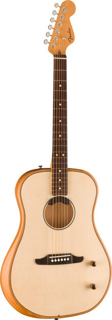 Dreadnought, cutaway, laminerad gran och sapele, 25,5” skala, oljad valnöt fingerbräda, Fender elektronik med...