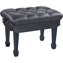 Deluxe höjdjusterbar pianobänk i massivt trä, svart högglansfinish med quiltad konstlädersits