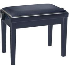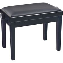 Höjdjusterbar pianobänk i massivt trä, svart högglansfinish med svart konstlädersits