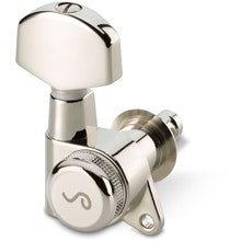 Låsbar stämskruv för gitarr. 3 vänster, 3 höger. Krom.
