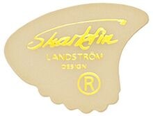 Sharkfin-plektrum i Medium-tjocklek, klassisk hajfeneform, svenskt original från 1960-talet, tydligt anslag...