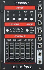 SoundForce Chorus 6 är ett 16HP Juno style BDD chorus med massor av CV inputs